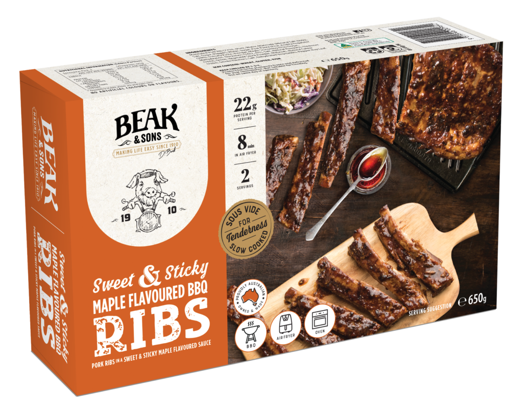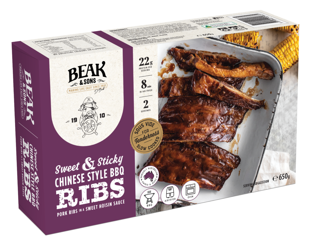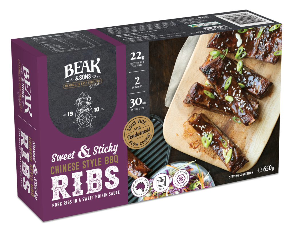 Marinated Pork Rib (77%) (Pork, Seasoning (Thickeners (1422, 1442, 415), Natural Colours (150a, 160c), Acidity Regulator (262), Sesame), Chinese BBQ Sauce (23%) (Water, Marinade (Mineral Salt (500)), Salt, Pepper), Water, Sugar, Seasoning (Thickeners (1422, 1442, 415), Natural Colours (150a, 160c), Acidity Regulator (262), Sesame), Hoisin Sauce (1.8%) (Soybean (Soy), Wheat Flour (Gluten), Thickener (1422)), Soy Sauce (Soybean (Soy), Wheat Flour (Gluten)), Garlic, Ginger, Mirin, Shao Xing Wine (Wheat), Honey, Sesame Oil, Thickener (1442), Vegetable Stock Powder, Vegetable Oil, Natural Colour (150a), Spices)